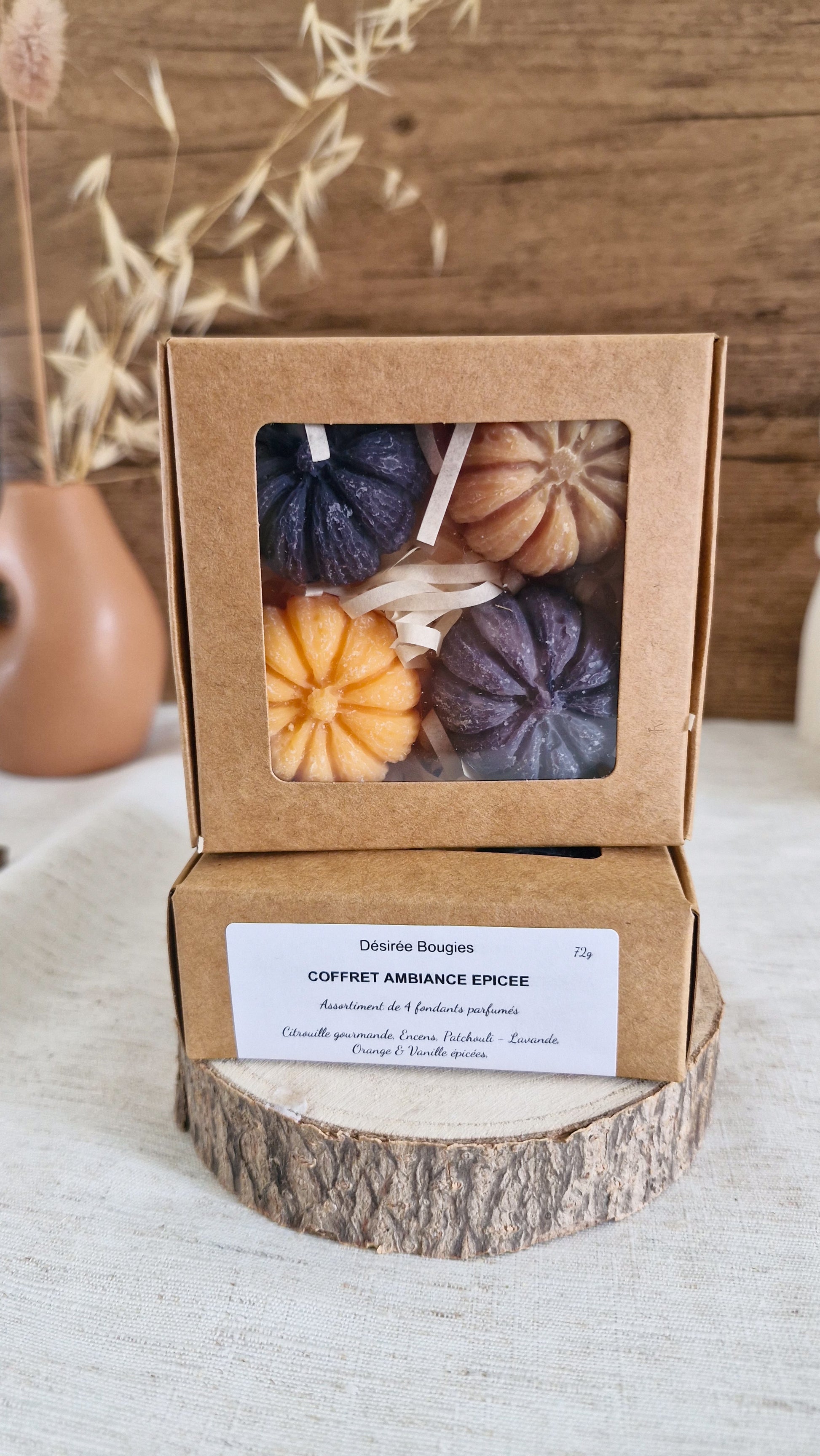 Orange & Vanille épicées • Patchouli & Lavande • Citrouille gourmande • Encens
