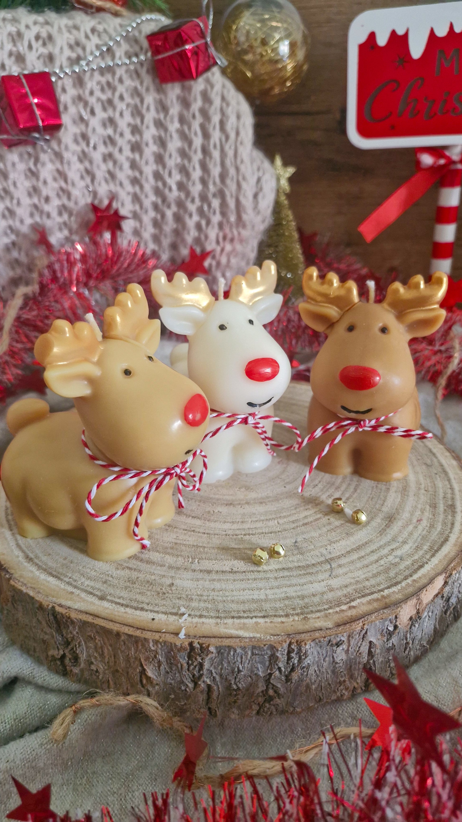 Apportez une touche festive et gourmande à votre intérieur avec les Rennes, des bougies moulées et peintes à la main.